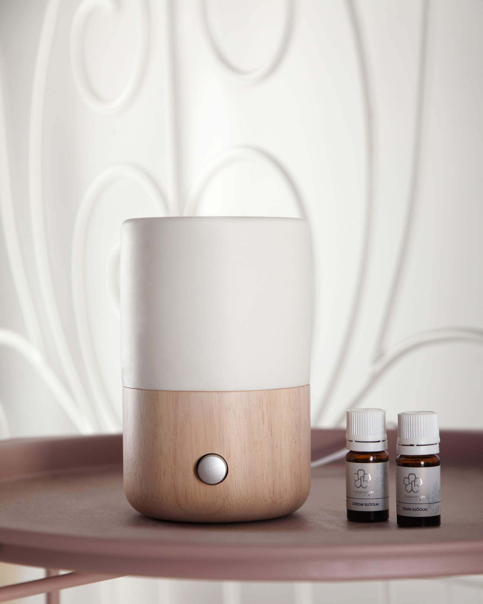 Kifinomult formája fából, üvegből és kerámiából készült, amit LED-es világítás egészít ki. Kiváló hatékonyságú, automata időzítő funkcióval ellátott száraz diffúzor.