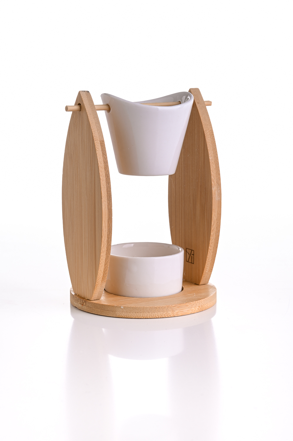 A kiváló minőségű kerámiából készült víztartót egy kézzel készített bambuszrúd tartja.
